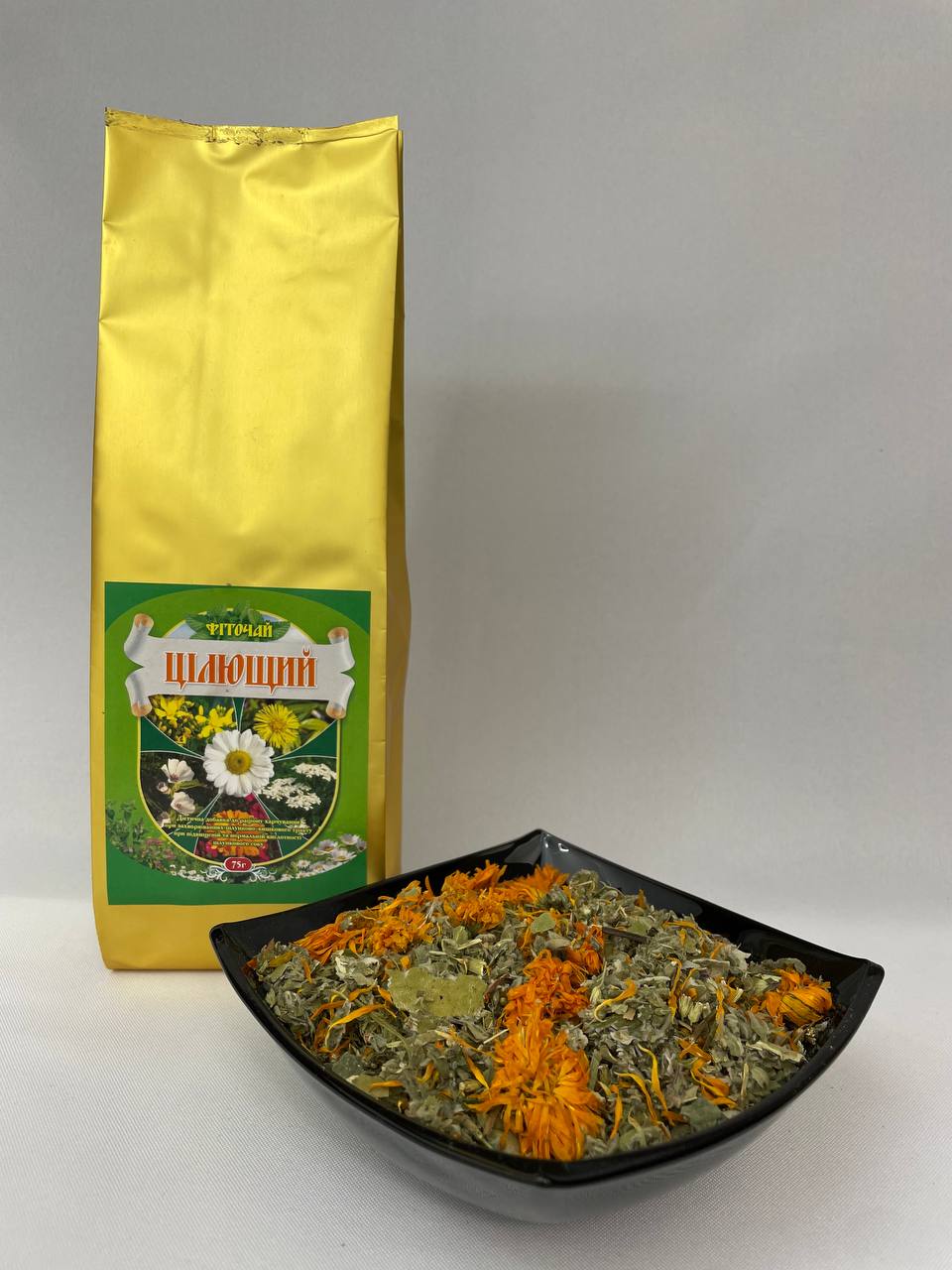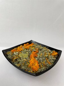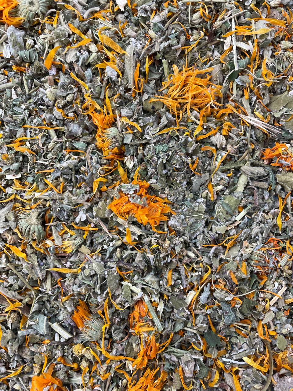 Склад: квітки ромашки, квітки календули, листя м’яти, трава звіробою, трава деревію, трава алтеї, листя мати-й-мачухи