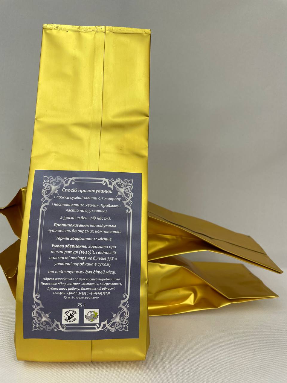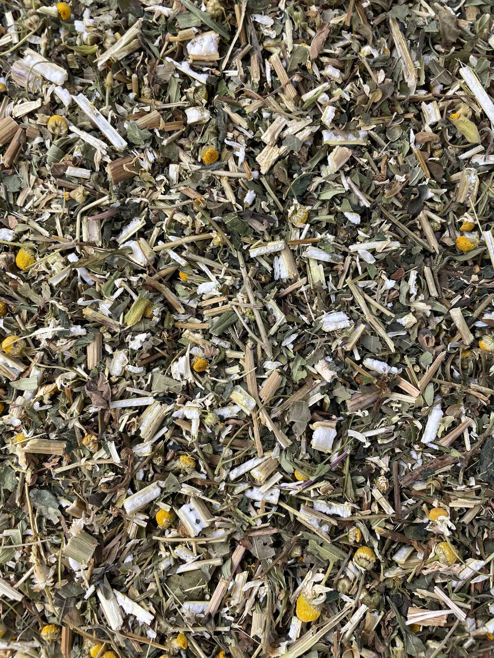Склад: трава шоломниці, листя кропиви, квітки ромашки, трава череди, трава вероніки, листя горіха.