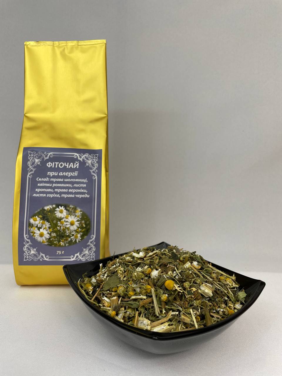 Фіточай “При алергії” підвищує імунітет. Зменшує алергічний свербіж. Має заспокійливу та протизапальну дію. Нормалізує обмін речовин.