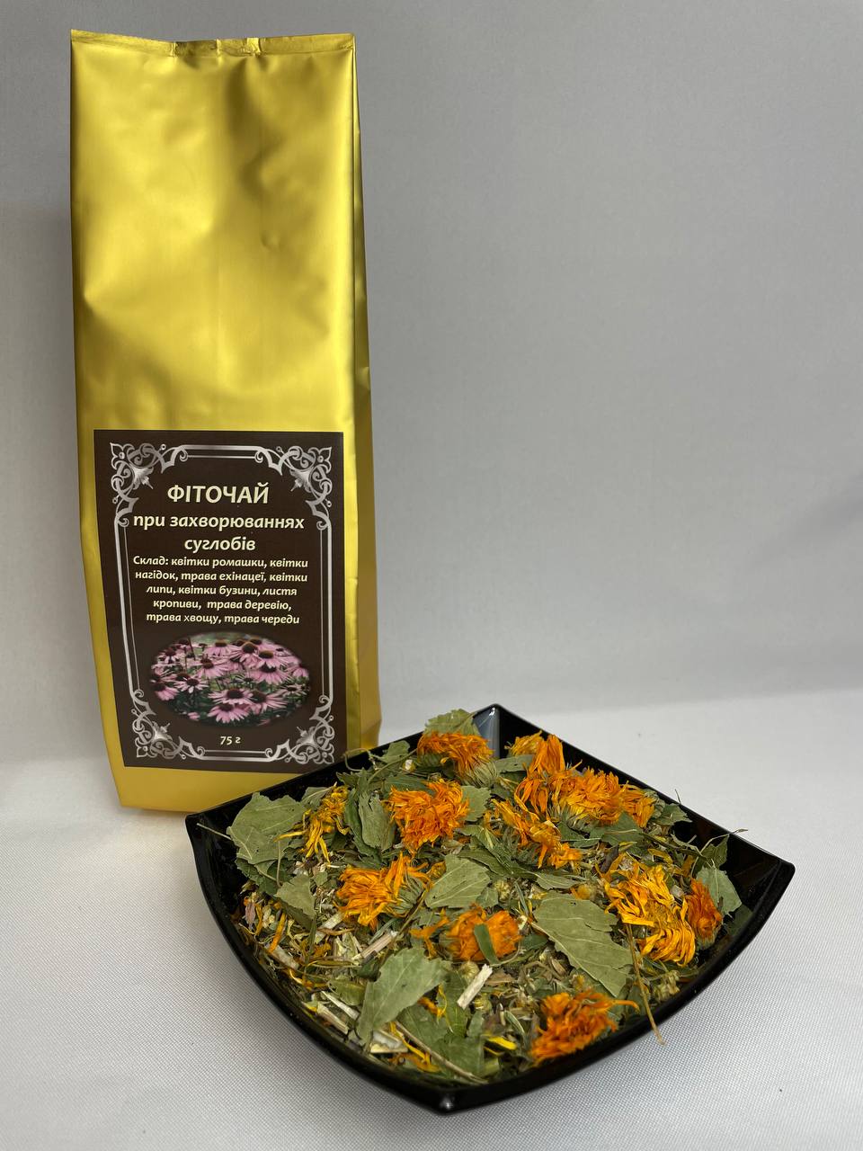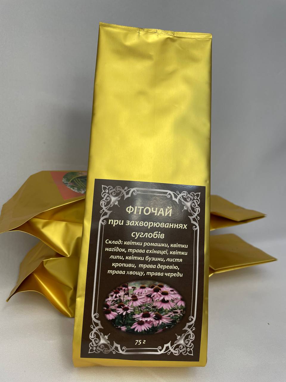 Фіточай “При захворюваннях суглобів” покращує обмін речовин в суглобових хрящах; сприяє зменшенню запальних процесів і зміцненню кісткової тканини; має протинабрякову, капілярозміцнюючу, очищуючу, сечогінну дію. Рекомендовано вживати при при запальних і запально-дегенеративних процесах в суглобах (артроз, артрити, поліартрити, остеохондроз хребта, подагра).