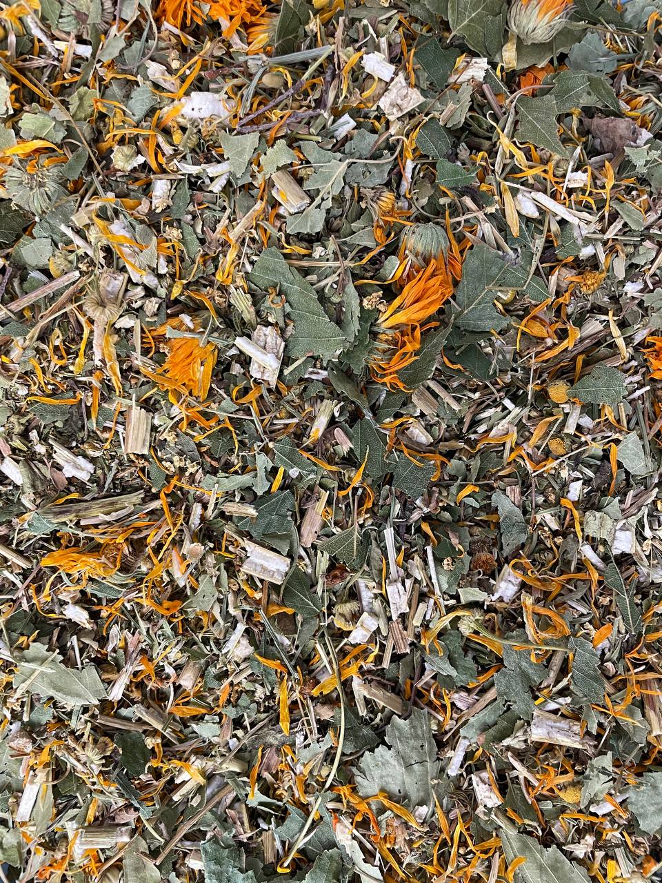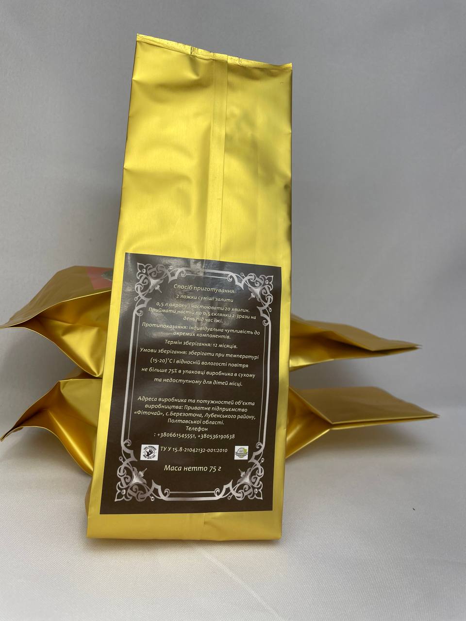 Склад: трава ехінацеї, листя кропиви, трава звіробою, квітки календули, квітки ромашки, трава хвощу, трава деревію, квітки бузини, квітки липи, трава череди.