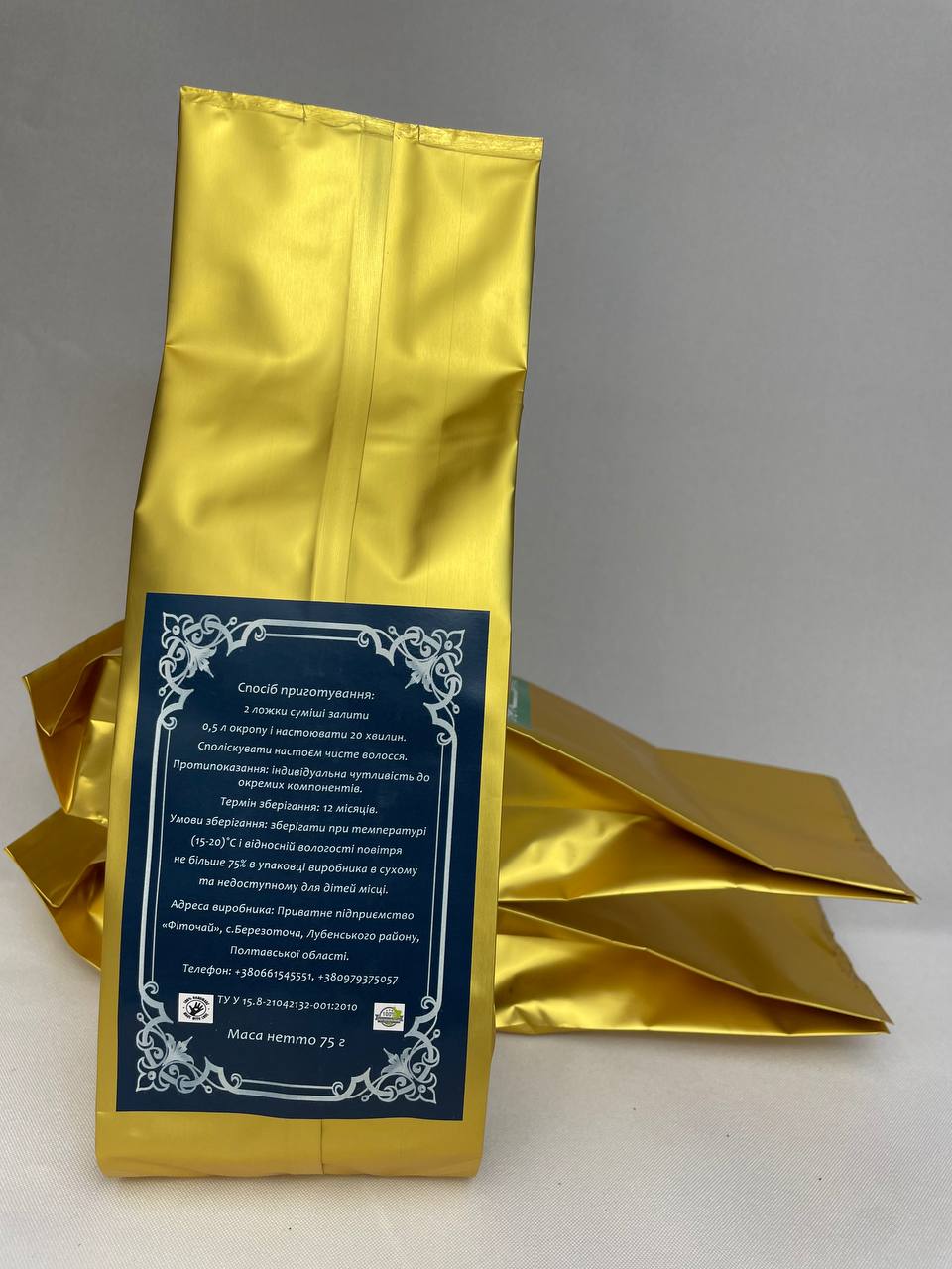 Фітозбір ”Для росту і укріплення волосся” рекомендовано використовувати як кондиціонер для волосся після миття голови. Фітозбір має виражену протизапальну, антибактеріальну, протисвербіжну дію; сприяє зменшенню лупи, очищенню шкіри голови; сприяє нормалізації загального стану шкіри голови і волосся по всій довжині, надає йому блиску, здорового вигляду та м’якості. Завдяки даному фітозбору зменшується випадіння волосся і прискорюється його ріст.